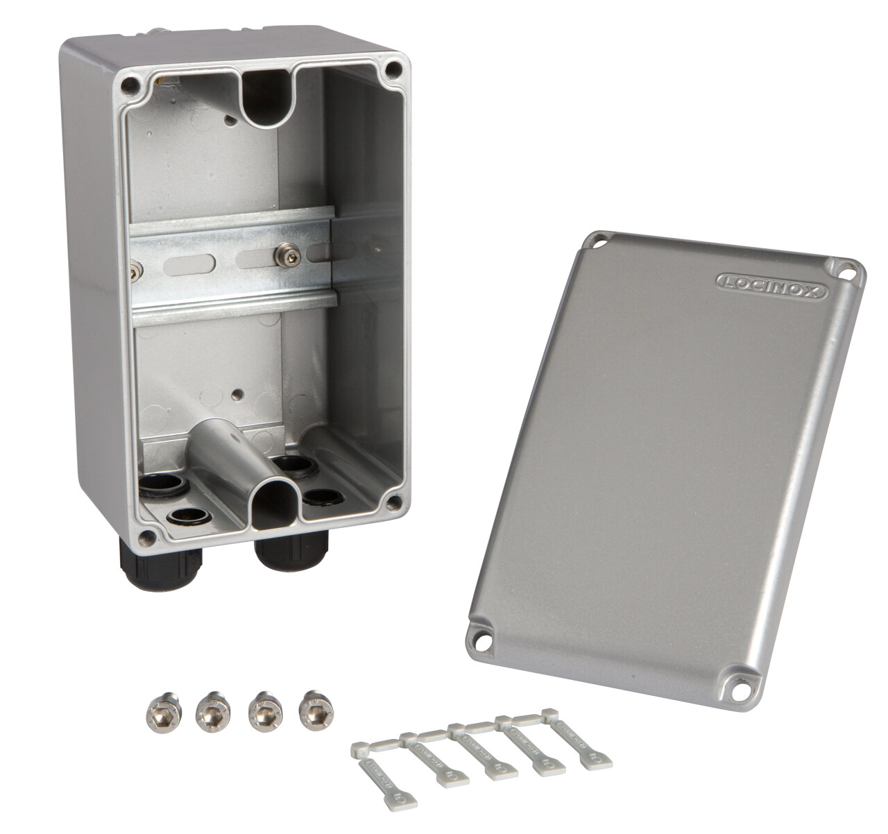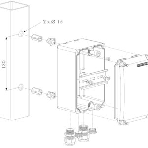Aluminium powder coated transformer box with Quick-Fix for strong and easy fixing.